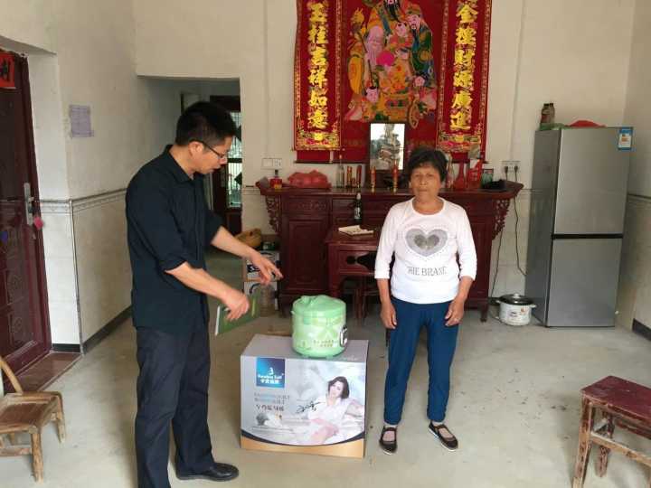 5月23日,县林业局戴磊局长带领班子成员走访冠山社区贫困户,给贫困户发放慰问品,图为走访贫困户的场景。 (冠山分场 刘兰英)
