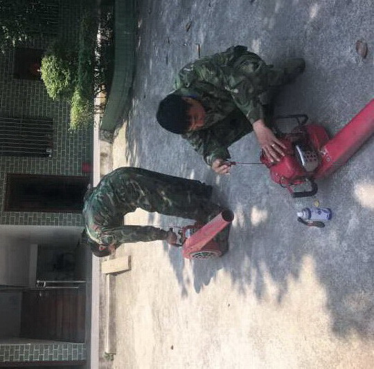 日前,八都分场组织人员对防火器材进行了维护保养,安排专人负责管理,做到平时拿得出,“战”时用得上。 图为管理人员正在为检修风力灭火机。 (八都分场 王 勇)